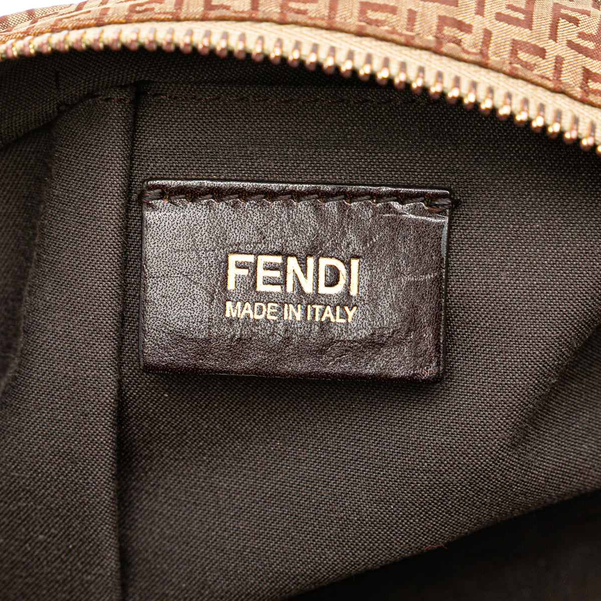 Vintage Fendi Mamma Baguette crafted in iconic Zucchino nylon, featuring the signature FF logo pattern, front FF clasp and practical side pockets, a less common variation of the classic silhouette. Designed for comfortable shoulder carry, this model combines lightweight construction with everyday functionality. A versatile early-2000s Fendi bag, ideal for daily use, travel and effortless Y2K styling.