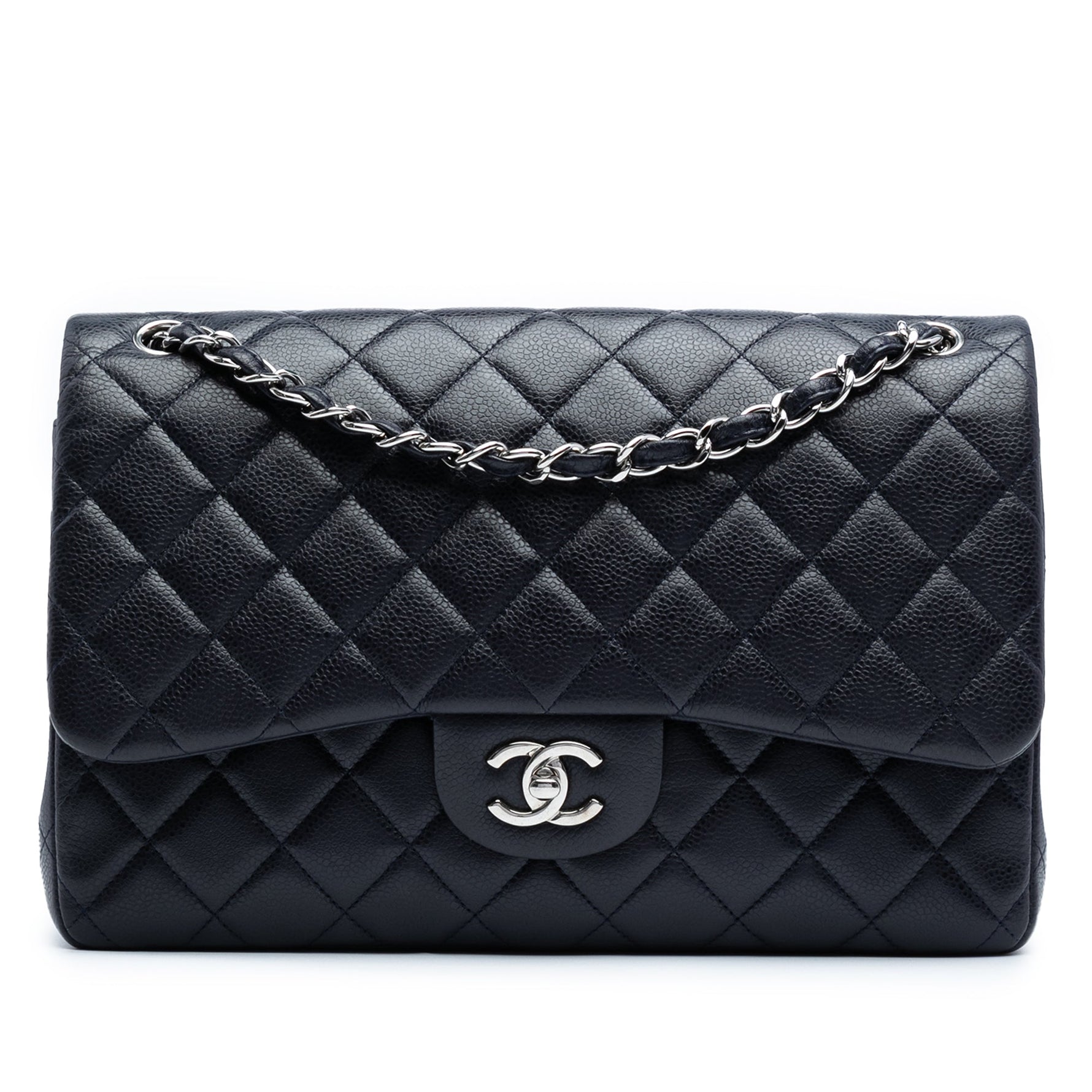 This version is crafted in blue caviar leather, loved for its structure and incredible durability, and finished with silver-tone hardware and the signature leather-woven chain. The Jumbo size offers a beautifully roomy interior, making it the perfect everyday luxury bag — elegant yet practical.