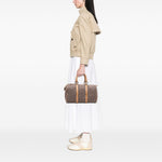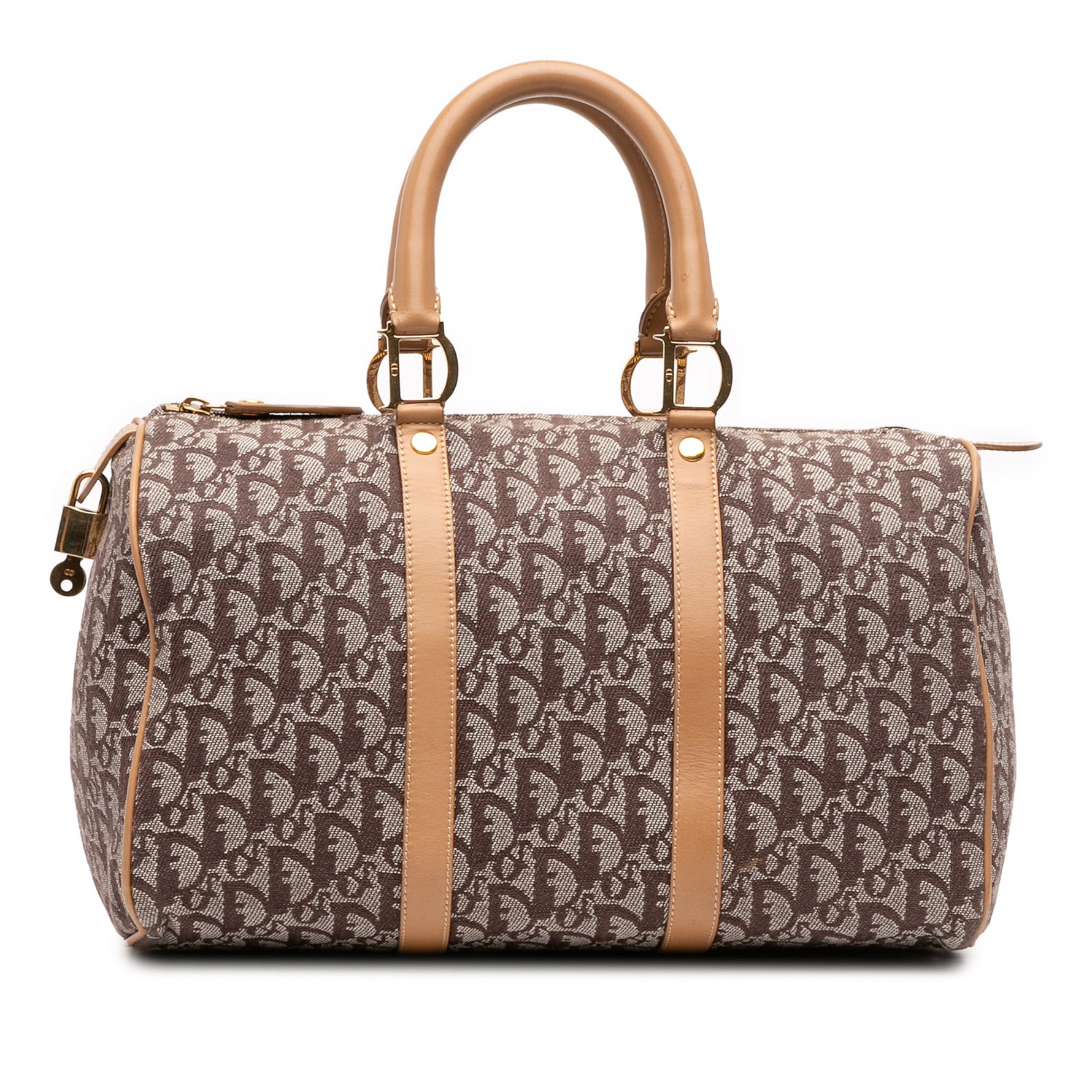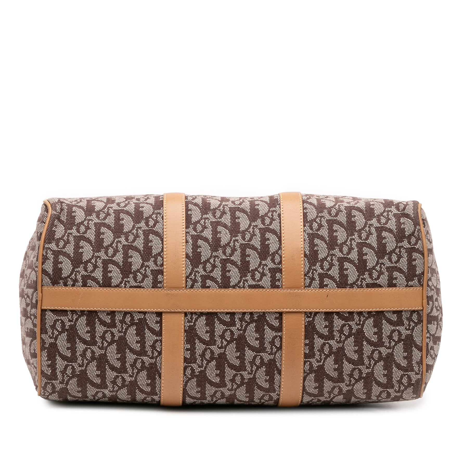 The Diorissimo Trotter Canvas Boston Bag is a timeless travel-inspired silhouette crafted in the house’s signature monogram canvas. Designed in warm brown tones with natural leather trim and top handles, it balances effortless elegance with everyday practicality.