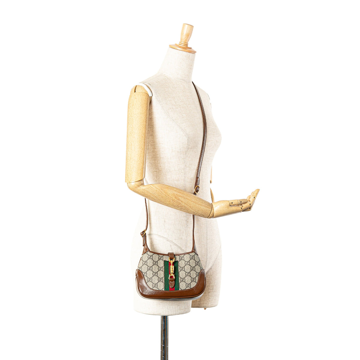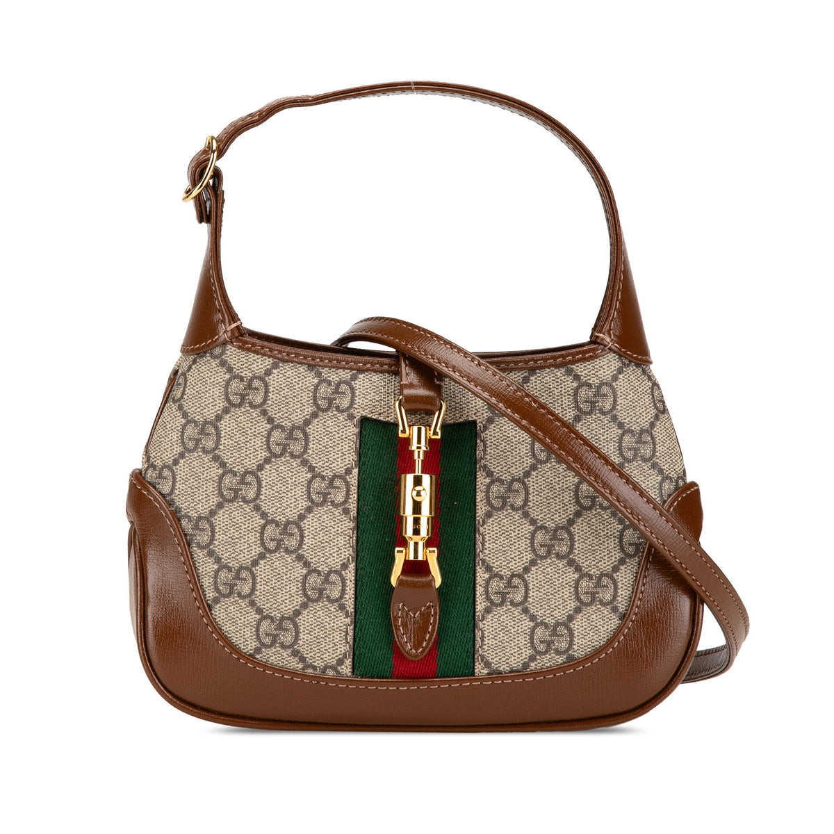The Gucci Jackie 1961 Shoulder Bag is one of the House’s most enduring icons — a sleek hobo silhouette first introduced in the 1960s and celebrated ever since for its effortless elegance and unmistakable character. This vintage version is crafted in classic GG canvas with brown leather trims and finished with the signature green-and-red Web stripe and gold-tone piston clasp — a timeless combination that defines Gucci heritage.