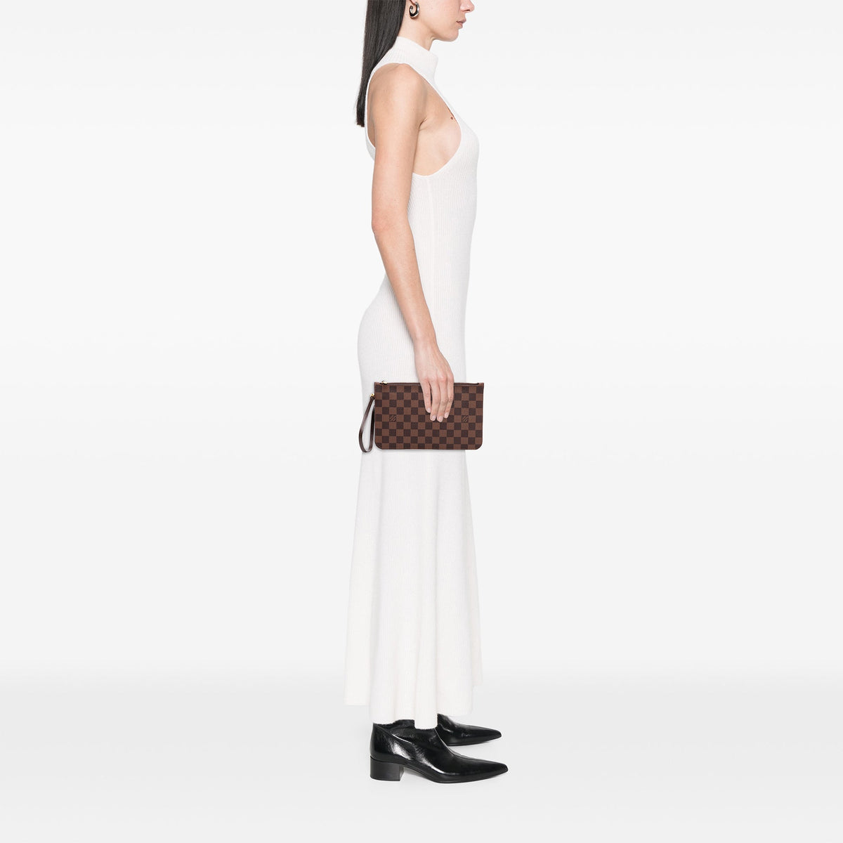The Louis Vuitton Neverfull pochette in Damier Ebene is one of the most iconic insert ever created by the Maison.