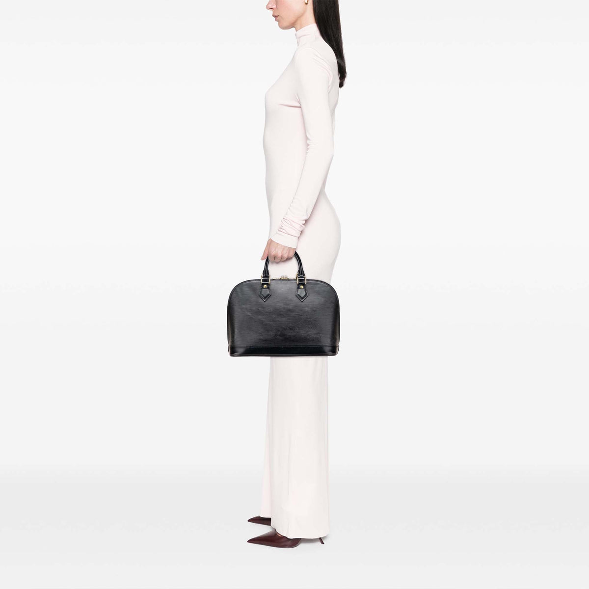 The structured silhouette of the Alma — timeless since its debut — pairs perfectly with the elegance of Epi leather, creating a piece that feels both modern and classic. Subtle embossed branding and refined metallic details elevate the design without ever overpowering its minimalist appeal.
