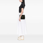 The structured flap silhouette features a turn-lock closure, a chain shoulder strap for crossbody or shoulder wear, and a top handle for a more polished carry. Bold yet refined, it strikes the perfect balance between rock-inspired edge and Italian elegance — making it the ideal day-to-evening statement piece.